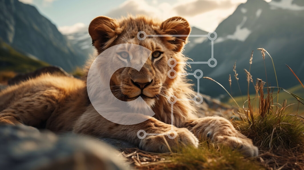 Intra Συλλεκτικό Ξύλινο Παζλ Plywood 4mm - Λιοντάρι ξαπλωμένο στο γρασίδι με βουνά στο φόντο Σε Ξύλινο Κουτί - Διαστάσεις: 10x10 cm – 25 κομμάτια