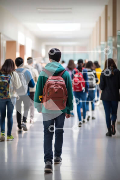 Intra Συλλεκτικό Ξύλινο Παζλ Plywood 4mm - Μαθητές που περπατούν στο διάδρομο του σχολείου με σακίδια Σε Ξύλινο Κουτί - Διαστάσεις Puzzle: 10x10 cm – 25 κομμάτια