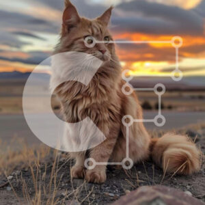 Intra Συλλεκτικό Ξύλινο Παζλ Plywood 4mm - Μακρύτριχη γάτα που παρακολουθεί το ηλιοβασίλεμα από τους βράχους Σε Ξύλινο Κουτί - Διαστάσεις: 10x10 cm – 25 κομμάτια