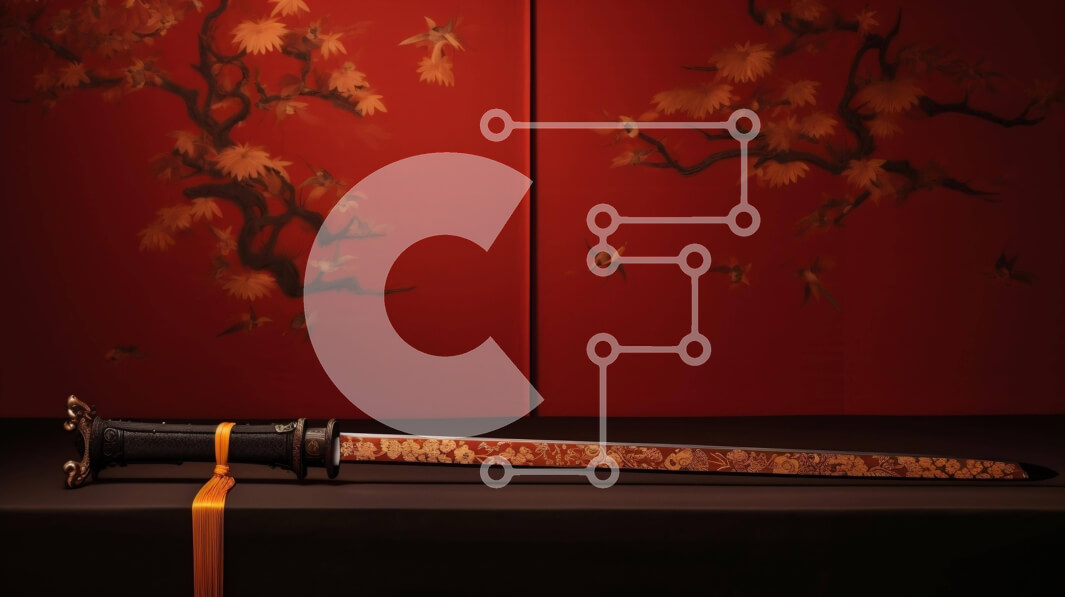 Intra Συλλεκτικό Ξύλινο Παζλ Plywood 4mm - Μακρύ ξύλινο ξίφος που εμφανίζεται μπροστά από περίτεχνα διακοσμημένο τοίχο Σε Ξύλινο Κουτί - Διαστάσεις: 10x10 cm – 25 κομμάτια