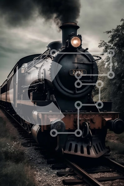 Intra Συλλεκτικό Ξύλινο Παζλ Plywood 4mm - Μαύρη ατμομηχανή ατμού σε γραμμές τρένου στην ύπαιθρο Σε Ξύλινο Κουτί - Διαστάσεις Puzzle: 10x10 cm – 25 κομμάτια