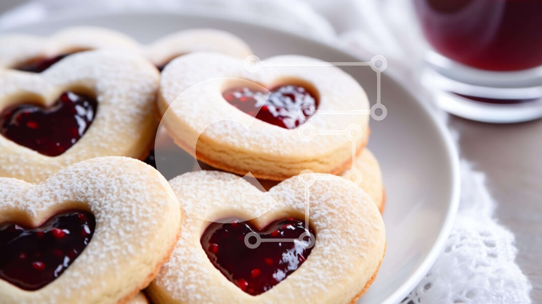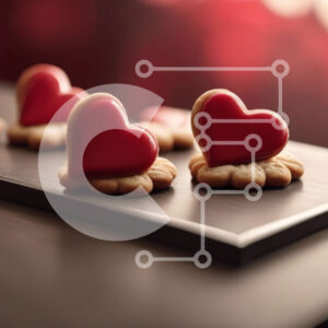Intra Συλλεκτικό Ξύλινο Παζλ Plywood 4mm - Μπισκότα του Αγίου Βαλεντίνου σε σχήμα καρδιάς σε ένα κόκκινο τραπέζι Σε Ξύλινο Κουτί - Διαστάσεις: 10x10 cm – 25 κομμάτια