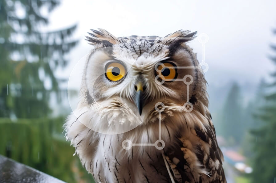 Intra Συλλεκτικό Ξύλινο Παζλ Plywood 4mm - Κουκουβάγια που κάθεται σε ένα κλαδί στη βροχή με έντονο βλέμμα Σε Ξύλινο Κουτί - Διαστάσεις: 10x10 cm – 25 κομμάτια