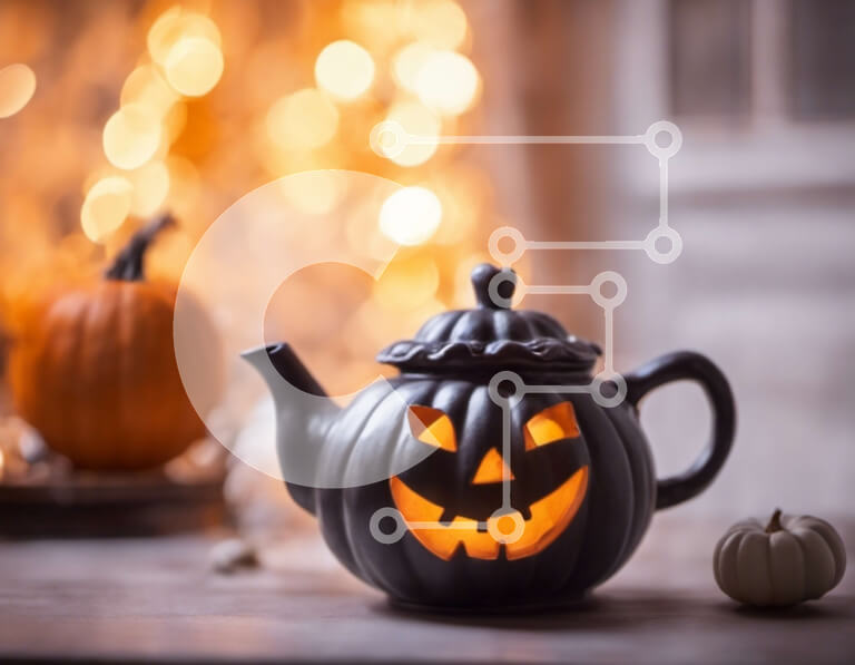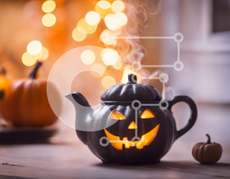 Intra Συλλεκτικό Ξύλινο Παζλ Plywood 4mm - Μαύρη τσαγιέρα με σκαλίσματα κολοκύθας για το Halloween Σε Ξύλινο Κουτί - Διαστάσεις: 10x10 cm – 25 κομμάτια