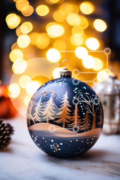 Intra Συλλεκτικό Ξύλινο Παζλ Plywood 4mm - Μαύρη Χριστουγεννιάτικη μπάλα με πεύκα και νιφάδες χιονιού σε ξύλινο τραπέζι Σε Ξύλινο Κουτί - Διαστάσεις: 10x10 cm – 25 κομμάτια