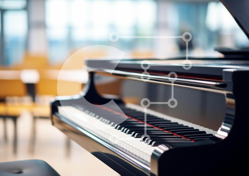 Intra Συλλεκτικό Ξύλινο Παζλ Plywood 4mm - Μαύρο μεγάλο πιάνο στο αμφιθέατρο Σε Ξύλινο Κουτί - Διαστάσεις Puzzle: 10x10 cm – 25 κομμάτια