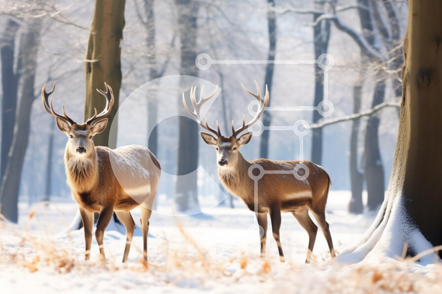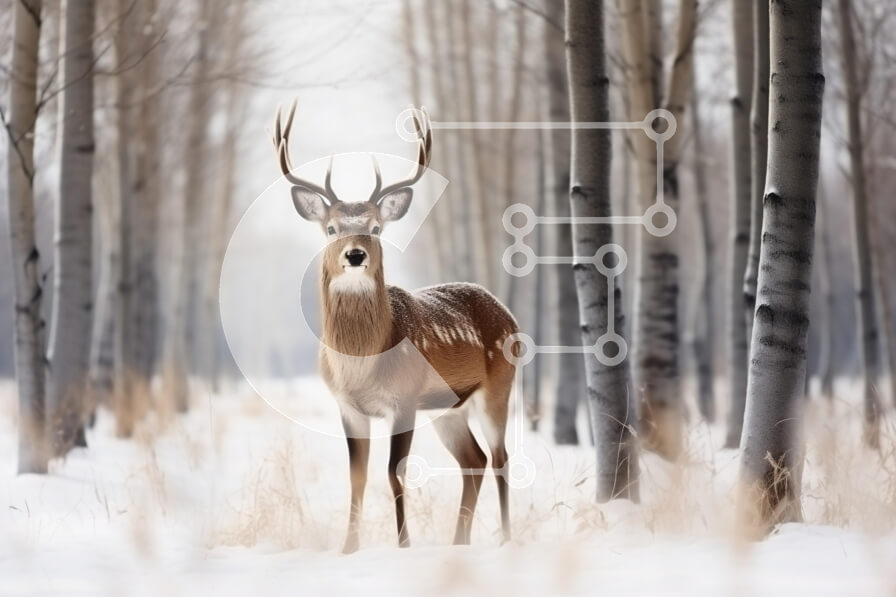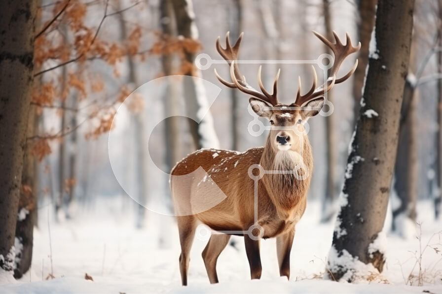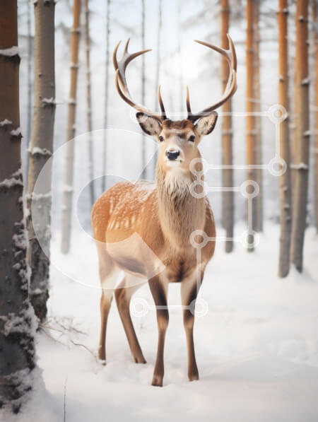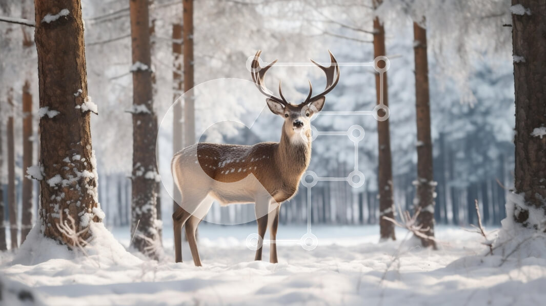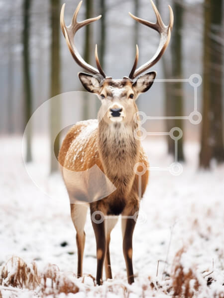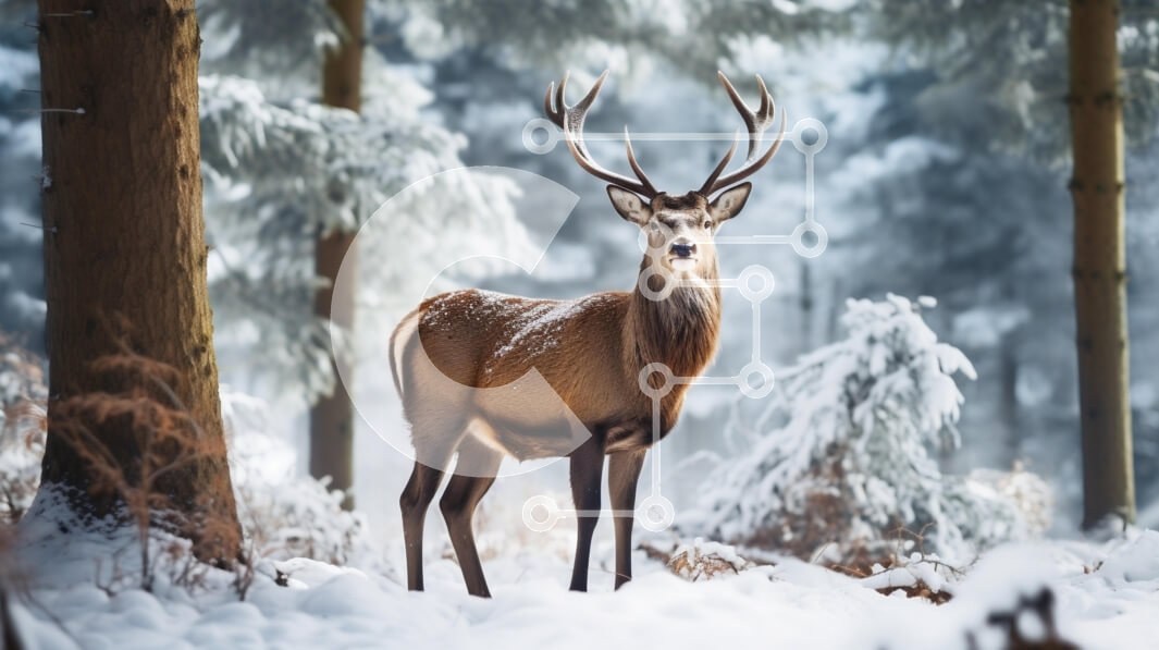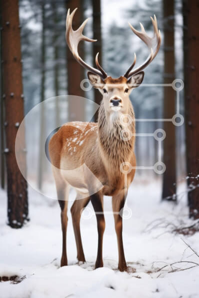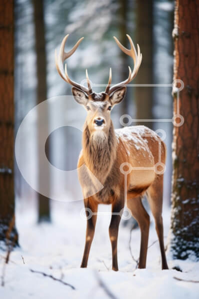 Intra Συλλεκτικό Ξύλινο Παζλ Plywood 4mm - Μεγαλοπρεπές ελάφι σε ένα χιονισμένο δάσος Σε Ξύλινο Κουτί - Διαστάσεις: 10x10 cm – 25 κομμάτια