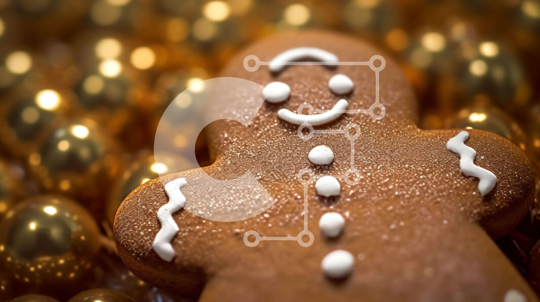 Intra Συλλεκτικό Ξύλινο Παζλ Plywood 4mm - Μελόψωμο άνθρωπος σε μπισκότα με στολίδια στο φόντο Σε Ξύλινο Κουτί - Διαστάσεις: 10x10 cm – 25 κομμάτια