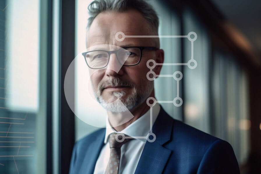 Intra Συλλεκτικό Ξύλινο Παζλ Plywood 4mm - Μεσήλικας επιχειρηματίας που αναλύει το γράφημα σε επίπεδη οθόνη Σε Ξύλινο Κουτί - Διαστάσεις Puzzle: 10x10 cm – 25 κομμάτια