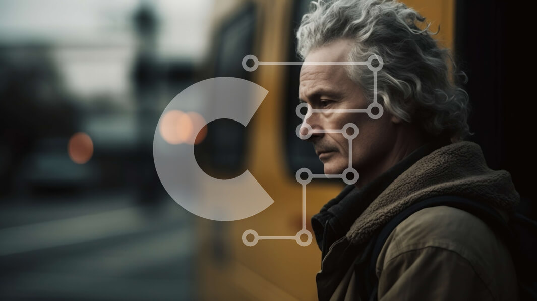 Intra Συλλεκτικό Ξύλινο Παζλ Plywood 4mm - Μεσήλικας που στέκεται δίπλα στο κίτρινο σχολικό λεωφορείο τη συννεφιασμένη μέρα Σε Ξύλινο Κουτί - Διαστάσεις Puzzle: 10x10 cm – 25 κομμάτια