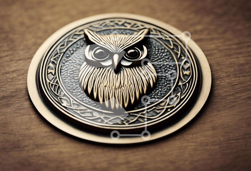 Intra Συλλεκτικό Ξύλινο Παζλ Plywood 4mm - Μεταλλικό μενταγιόν κουκουβάγιας σε ξύλινο τραπέζι Σε Ξύλινο Κουτί - Διαστάσεις: 10x10 cm – 25 κομμάτια