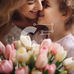 Intra Συλλεκτικό Ξύλινο Παζλ Plywood 4mm - Μητέρα και κόρη με ροζ τουλίπες Σε Ξύλινο Κουτί - Διαστάσεις Puzzle: 10x10 cm – 25 κομμάτια