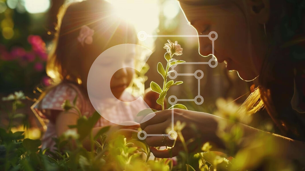 Intra Συλλεκτικό Ξύλινο Παζλ Plywood 4mm - Μητέρα και κόρη παίζουν σε ένα χωράφι με λουλούδια Σε Ξύλινο Κουτί - Διαστάσεις: 10x10 cm – 25 κομμάτια