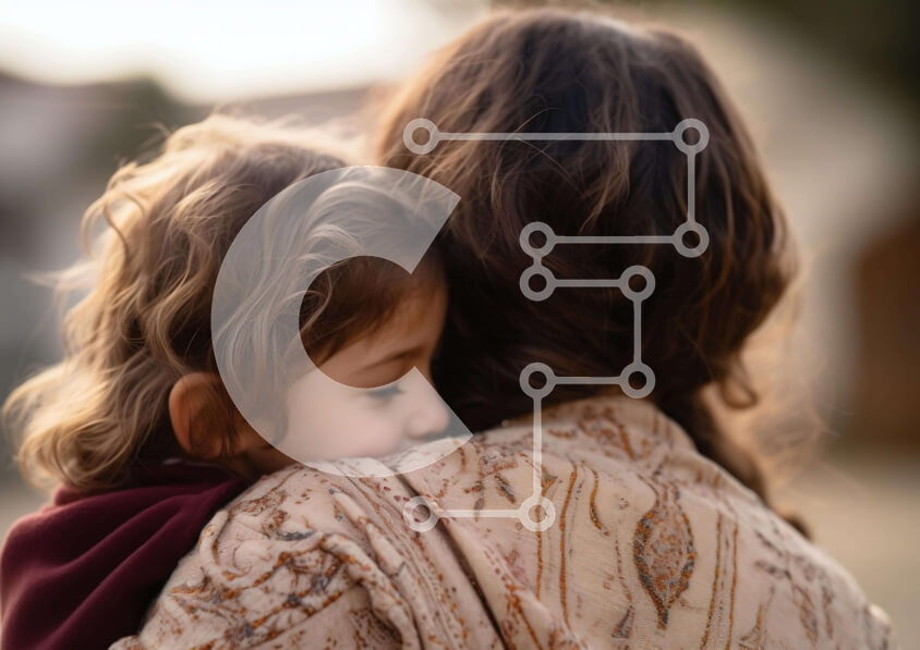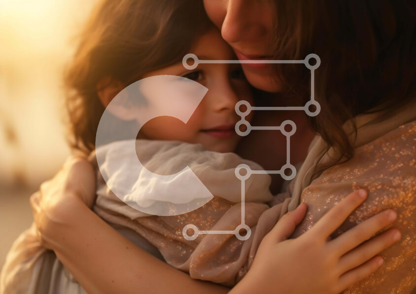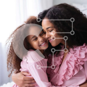 Intra Συλλεκτικό Ξύλινο Παζλ Plywood 4mm - Μητέρα και κόρη αγκαλιάζονται με ροζ πιτζάμες Σε Ξύλινο Κουτί - Διαστάσεις Puzzle: 10x10 cm – 25 κομμάτια