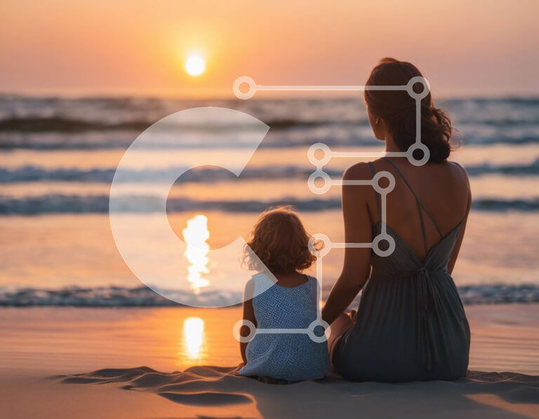 Intra Συλλεκτικό Ξύλινο Παζλ Plywood 4mm - Μητέρα και παιδί στο ηλιοβασίλεμα στην παραλία Σε Ξύλινο Κουτί - Διαστάσεις Puzzle: 10x10 cm – 25 κομμάτια