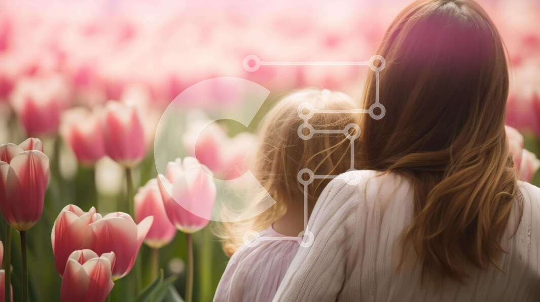 Intra Συλλεκτικό Ξύλινο Παζλ Plywood 4mm - Μητέρα και παιδί στο πεδίο των ροζ τουλίπες Σε Ξύλινο Κουτί - Διαστάσεις: 10x10 cm – 25 κομμάτια