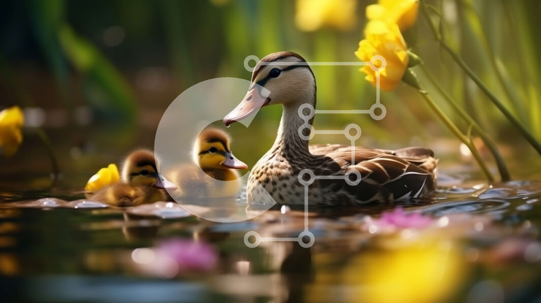 Intra Συλλεκτικό Ξύλινο Παζλ Plywood 4mm - Μητέρα πάπια και παπάκια στη λίμνη με τα κίτρινα λουλούδια Σε Ξύλινο Κουτί - Διαστάσεις: 10x10 cm – 25 κομμάτια