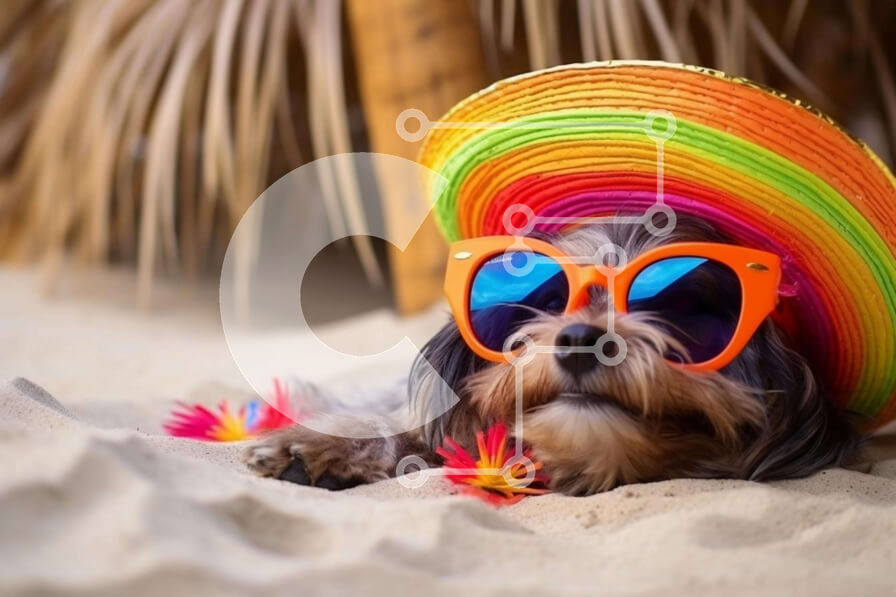 Intra Συλλεκτικό Ξύλινο Παζλ Plywood 4mm - Μικρό σκυλί με πολύχρωμα γυαλιά ηλίου στην παραλία Σε Ξύλινο Κουτί - Διαστάσεις: 10x10 cm – 25 κομμάτια