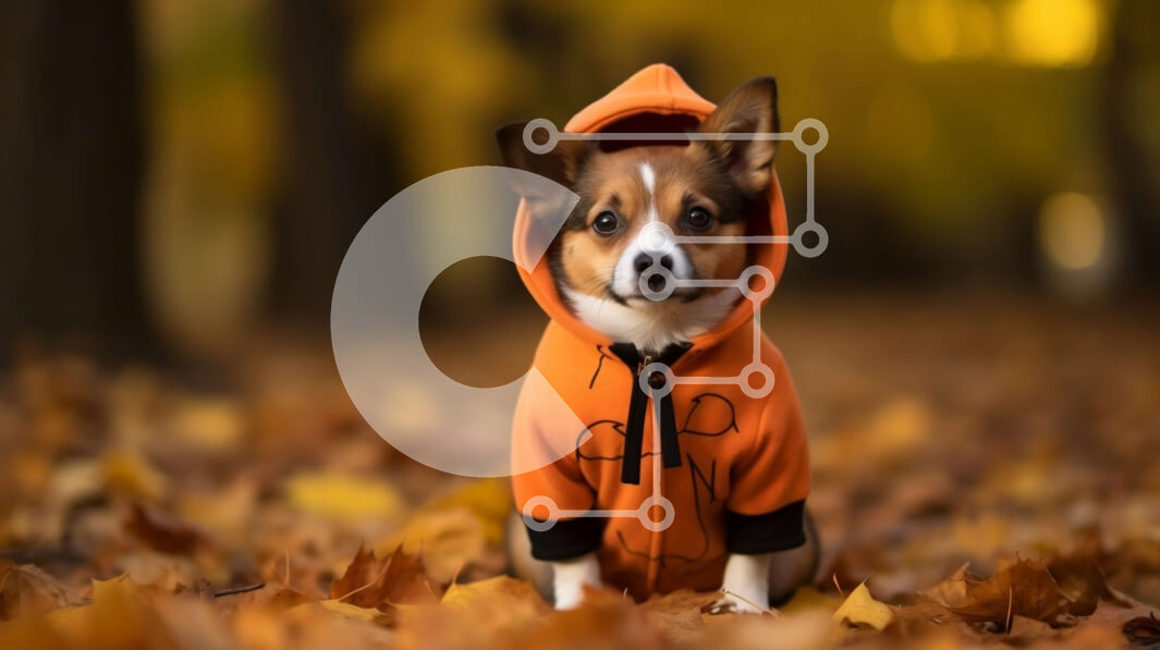Intra Συλλεκτικό Ξύλινο Παζλ Plywood 4mm - Μικρό σκυλί με πορτοκαλί φούτερ που κάθεται στα φθινοπωρινά φύλλα Σε Ξύλινο Κουτί - Διαστάσεις: 10x10 cm – 25 κομμάτια