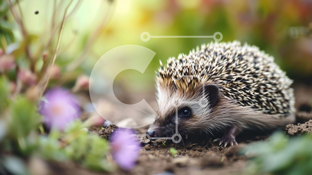 Intra Συλλεκτικό Ξύλινο Παζλ Plywood 4mm - Μικρός σκαντζόχοιρος σε έναν κήπο με μοβ λουλούδια Σε Ξύλινο Κουτί - Διαστάσεις: 10x10 cm – 25 κομμάτια