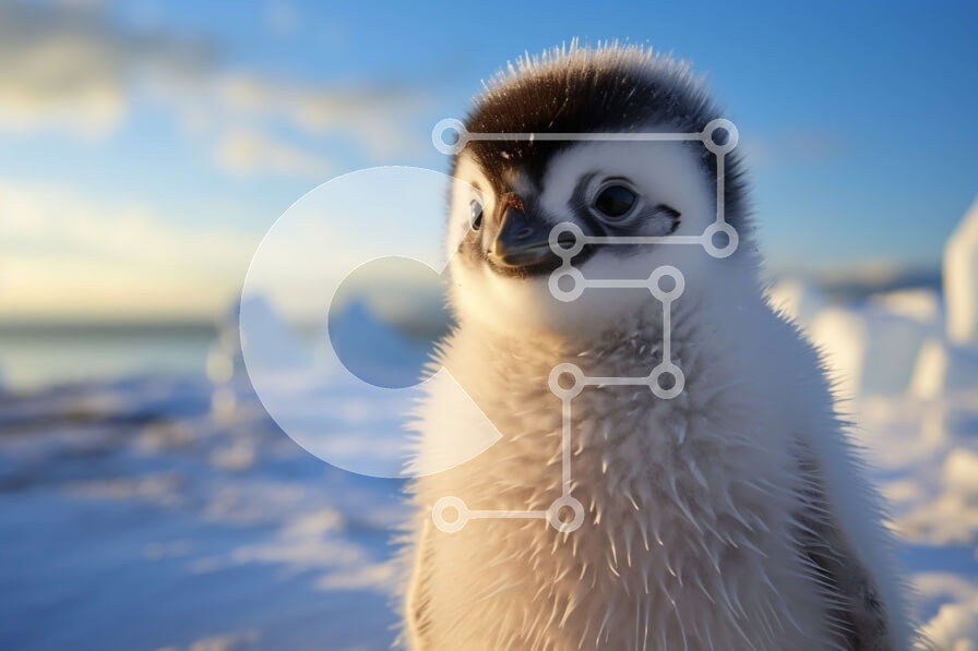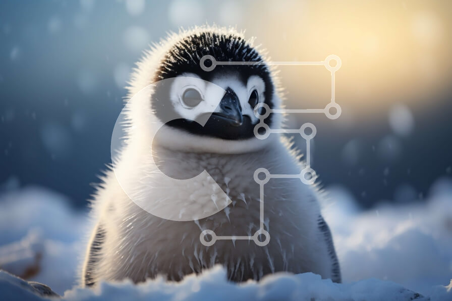 Intra Συλλεκτικό Ξύλινο Παζλ Plywood 4mm - Μικρός πιγκουίνος που στέκεται σε χιονισμένη επιφάνεια με φόντο ηλιοβασίλεμα Σε Ξύλινο Κουτί - Διαστάσεις: 10x10 cm – 25 κομμάτια