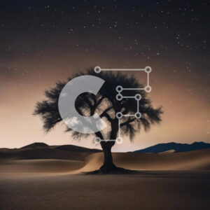 Intra Συλλεκτικό Ξύλινο Παζλ Plywood 4mm - Μοναχικό δέντρο στην έρημο σκιαγραφημένο ενάντια στη λευκή άμμο Σε Ξύλινο Κουτί - Διαστάσεις: 10x10 cm – 25 κομμάτια