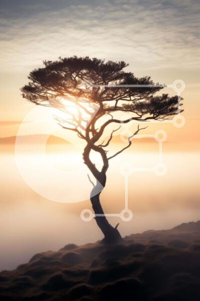 Intra Συλλεκτικό Ξύλινο Παζλ Plywood 4mm - Μοναχικό δέντρο στην ομίχλη σε ένα ομιχλώδες βράδυ Σε Ξύλινο Κουτί - Διαστάσεις: 10x10 cm – 25 κομμάτια