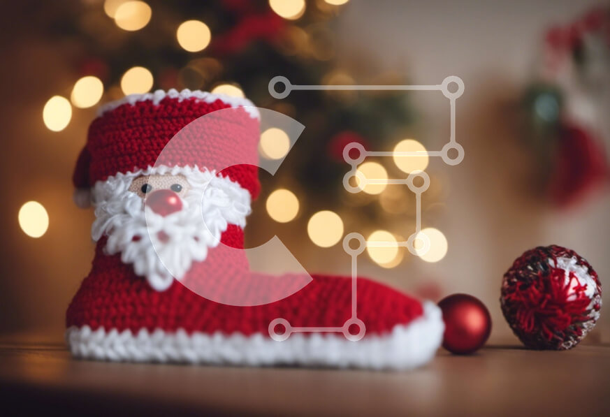Intra Συλλεκτικό Ξύλινο Παζλ Plywood 4mm - Μποτάκι Άγιου Βασίλη με κροσέ με στολίδια και χριστουγεννιάτικα φωτάκια Σε Ξύλινο Κουτί - Διαστάσεις: 10x10 cm – 25 κομμάτια