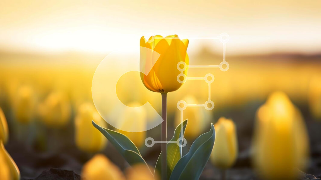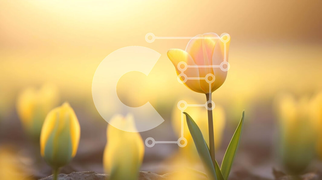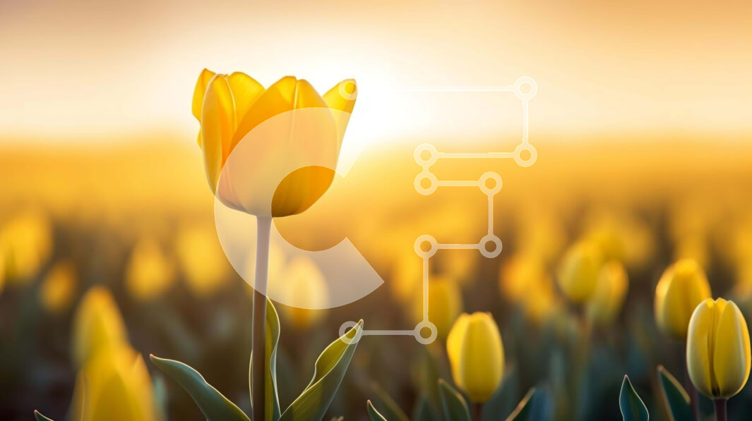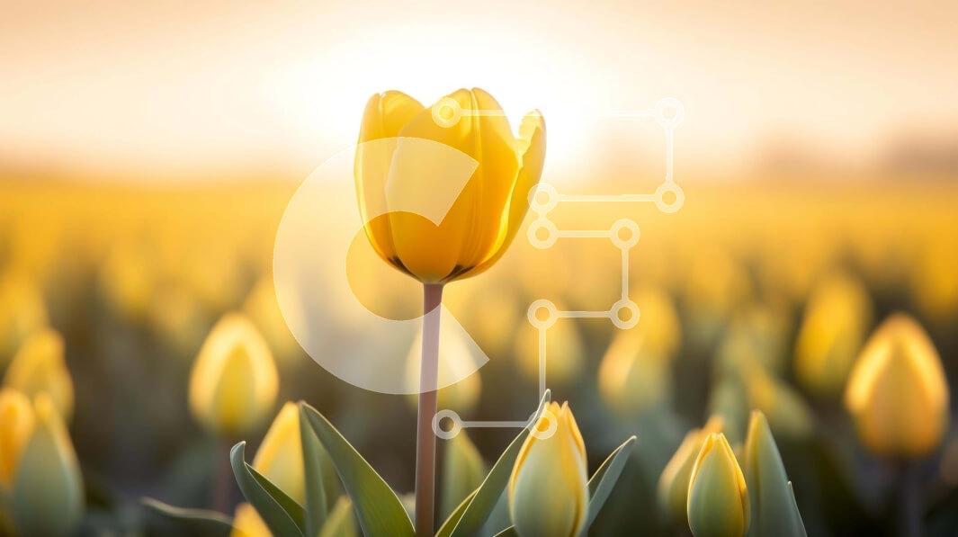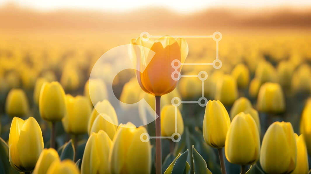 Intra Συλλεκτικό Ξύλινο Παζλ Plywood 4mm - Μονή κίτρινη τουλίπα που ξεχωρίζει στο πεδίο των λουλουδιών Σε Ξύλινο Κουτί - Διαστάσεις: 10x10 cm – 25 κομμάτια