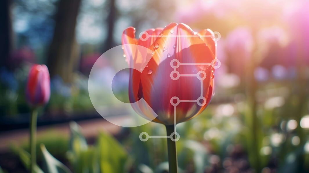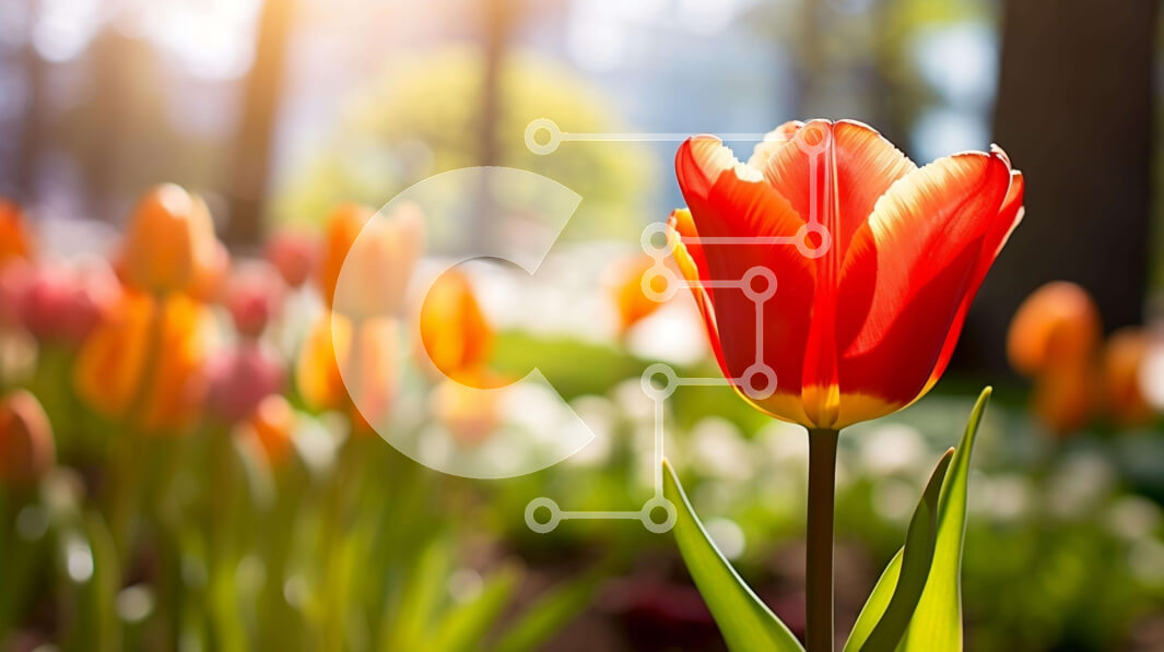 Intra Συλλεκτικό Ξύλινο Παζλ Plywood 4mm - Μονή κόκκινη τουλίπα που ξεχωρίζει ανάμεσα στα λουλούδια Σε Ξύλινο Κουτί - Διαστάσεις: 10x10 cm – 25 κομμάτια