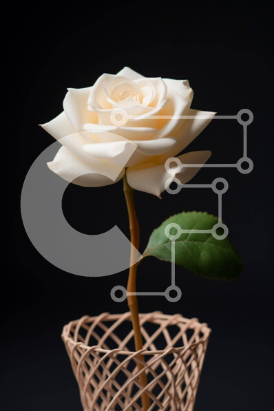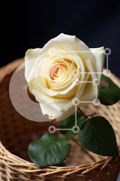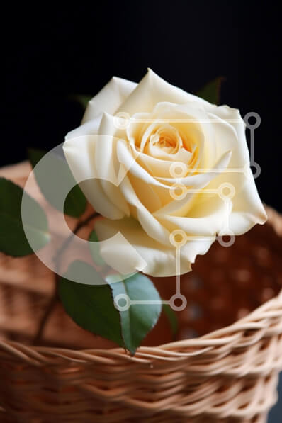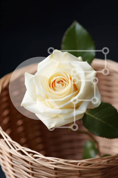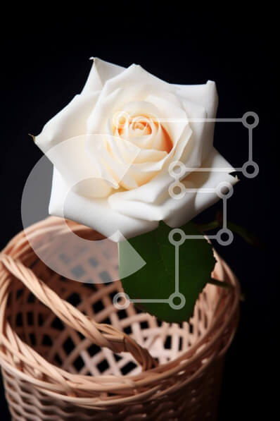 Intra Συλλεκτικό Ξύλινο Παζλ Plywood 4mm - Μονό λευκό τριαντάφυλλο σε ψάθινο καλάθι σε μαύρο φόντο Σε Ξύλινο Κουτί - Διαστάσεις Puzzle: 10x10 cm – 25 κομμάτια
