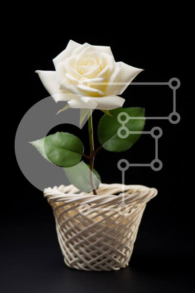 Intra Συλλεκτικό Ξύλινο Παζλ Plywood 4mm - Μονό λευκό τριαντάφυλλο σε ένα καλάθι σε μαύρο φόντο Σε Ξύλινο Κουτί - Διαστάσεις: 10x10 cm – 25 κομμάτια