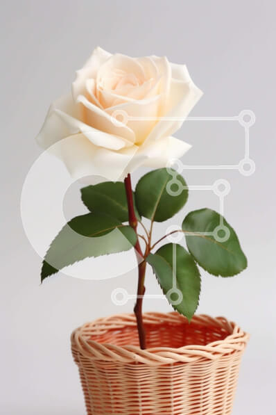 Intra Συλλεκτικό Ξύλινο Παζλ Plywood 4mm - Μονό λευκό τριαντάφυλλο σε ψάθινο καλάθι Σε Ξύλινο Κουτί - Διαστάσεις: 10x10 cm – 25 κομμάτια