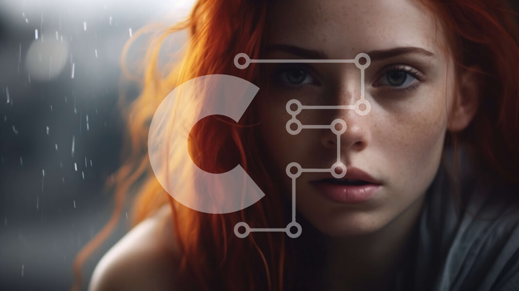 Intra Συλλεκτικό Ξύλινο Παζλ Plywood 4mm - Μελαγχολικό πορτρέτο μιας νεαρής γυναίκας με κόκκινα μαλλιά και πράσινα μάτια σε μαύρο δερμάτινο μπουφάν Σε Ξύλινο Κουτί - Διαστάσεις Puzzle: 10x10 cm – 25 κομμάτια