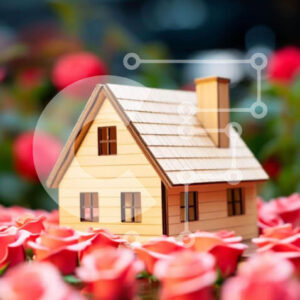 Intra Συλλεκτικό Ξύλινο Παζλ Plywood 4mm - Μοντέλο μικρού σπιτιού που περιβάλλεται από τριαντάφυλλα Σε Ξύλινο Κουτί - Διαστάσεις: 10x10 cm – 25 κομμάτια