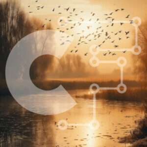 Intra Συλλεκτικό Ξύλινο Παζλ Plywood 4mm - Όμορφο ηλιοβασίλεμα με πουλιά που πετούν πάνω από το νερό Σε Ξύλινο Κουτί - Διαστάσεις: 10x10 cm – 25 κομμάτια