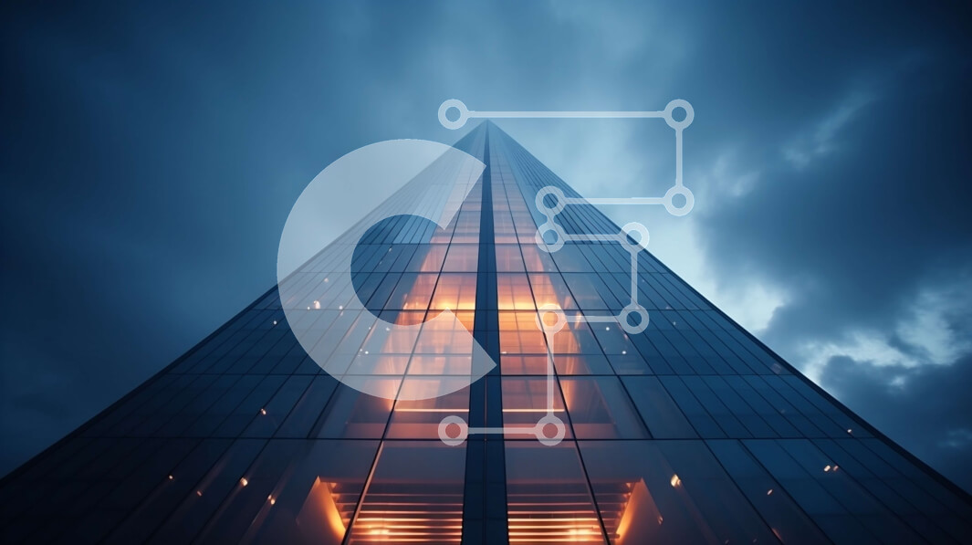 Intra Συλλεκτικό Ξύλινο Παζλ Plywood 4mm - Μοντέρνο γυάλινο κτήριο με μπλε ουρανούς και σύννεφα Σε Ξύλινο Κουτί - Διαστάσεις Puzzle: 10x10 cm – 25 κομμάτια