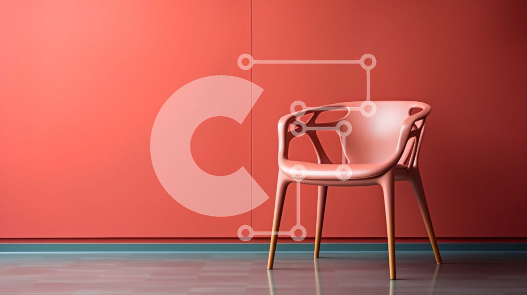 Intra Συλλεκτικό Ξύλινο Παζλ Plywood 4mm - Μοντέρνα ροζ καρέκλα μπροστά από τον γυαλιστερό κόκκινο τοίχο Σε Ξύλινο Κουτί - Διαστάσεις Puzzle: 10x10 cm – 25 κομμάτια
