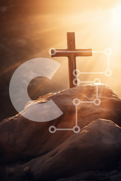 Intra Συλλεκτικό Ξύλινο Παζλ Plywood 4mm - Ξύλινος σταυρός σε βραχώδες έδαφος με το φως του ήλιου Σε Ξύλινο Κουτί - Διαστάσεις Puzzle: 10x10 cm – 25 κομμάτια
