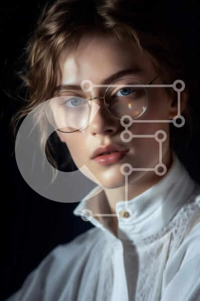 Intra Συλλεκτικό Ξύλινο Παζλ Plywood 4mm - Όμορφο πορτρέτο μιας γυναίκας με γυαλιά και ένα λευκό πουκάμισο Σε Ξύλινο Κουτί - Διαστάσεις Puzzle: 10x10 cm – 25 κομμάτια