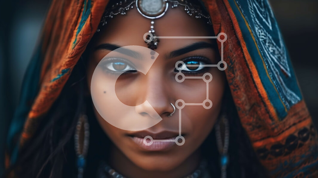 Intra Συλλεκτικό Ξύλινο Παζλ Plywood 4mm - Όμορφο πορτρέτο μιας γυναίκας με σκούρο δέρμα και μακριά σγουρά μαλλιά με πολύχρωμη μαντίλα και κοσμήματα Σε Ξύλινο Κουτί - Διαστάσεις Puzzle: 10x10 cm – 25 κομμάτια