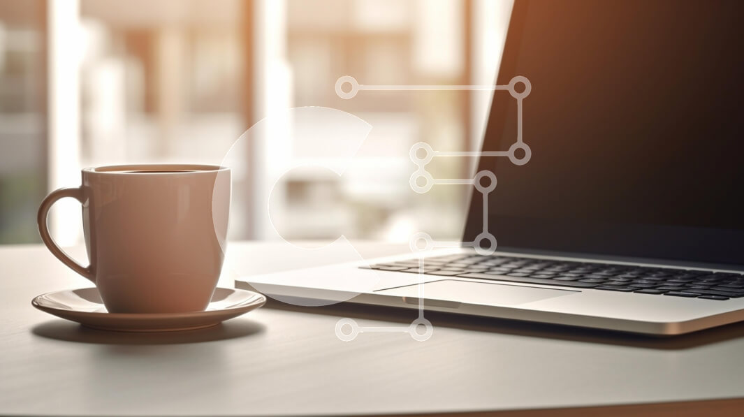 Intra Συλλεκτικό Ξύλινο Παζλ Plywood 4mm - Μοντέρνος χώρος εργασίας με φορητό υπολογιστή και καφέ Σε Ξύλινο Κουτί - Διαστάσεις Puzzle: 10x10 cm – 25 κομμάτια