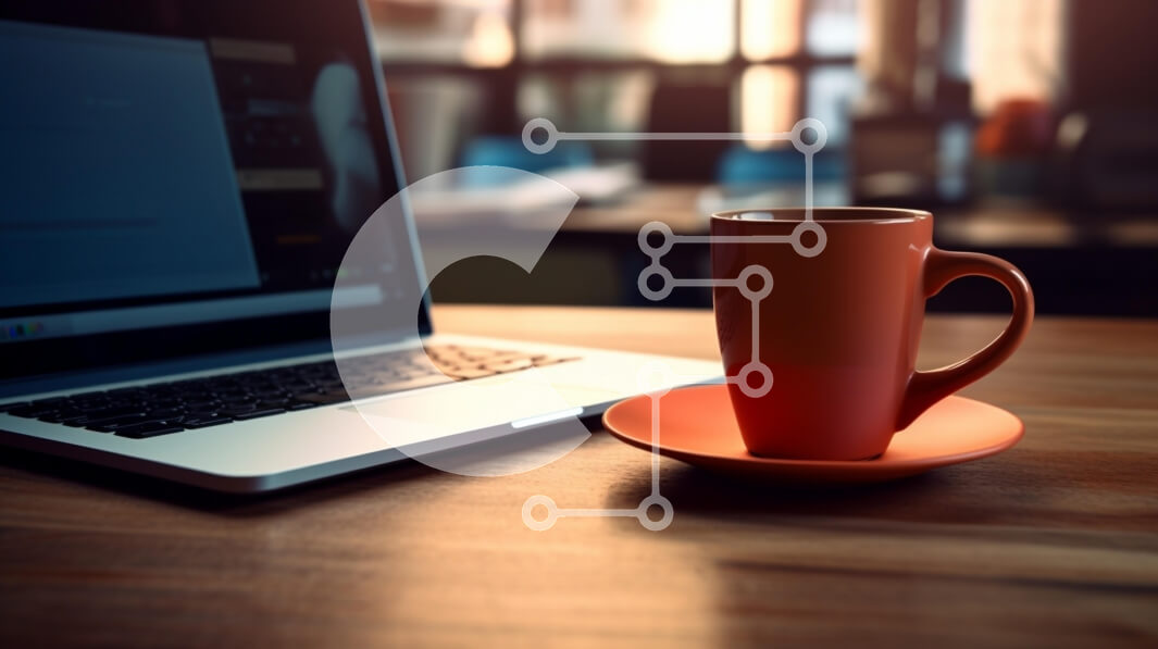Intra Συλλεκτικό Ξύλινο Παζλ Plywood 4mm - Μοντέρνος χώρος εργασίας με φορητό υπολογιστή και καφέ Σε Ξύλινο Κουτί - Διαστάσεις Puzzle: 10x10 cm – 25 κομμάτια