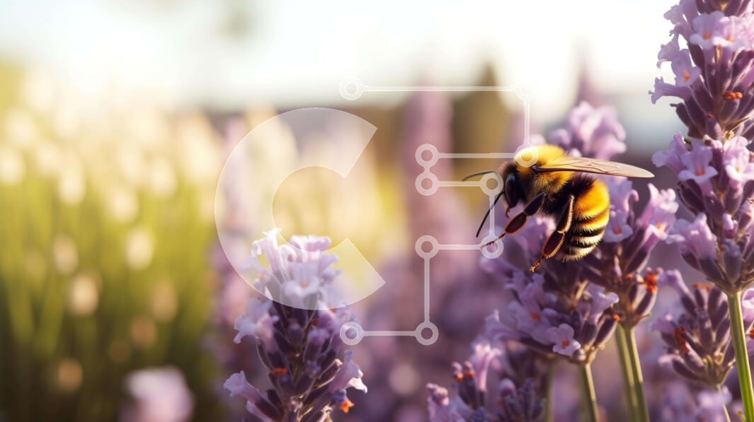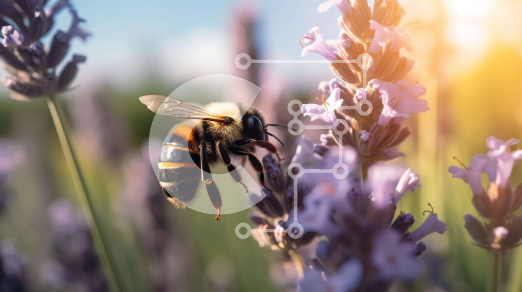 Intra Συλλεκτικό Ξύλινο Παζλ Plywood 4mm - Μέλισσα στα λουλούδια λεβάντας με τον ήλιο να λάμπει πίσω Σε Ξύλινο Κουτί - Διαστάσεις: 10x10 cm – 25 κομμάτια
