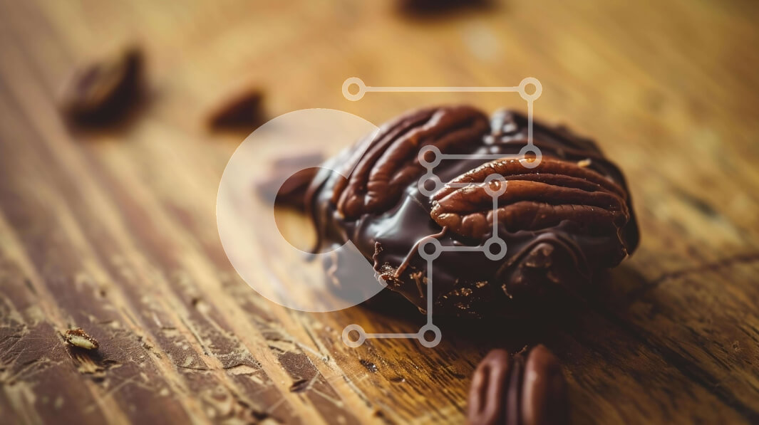 Intra Συλλεκτικό Ξύλινο Παζλ Plywood 4mm - Μπαλάκι πεκάν με σοκολάτα σε ξύλινο τραπέζι Σε Ξύλινο Κουτί - Διαστάσεις: 10x10 cm – 25 κομμάτια