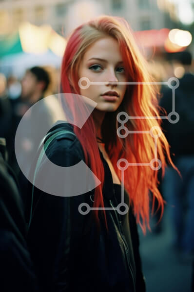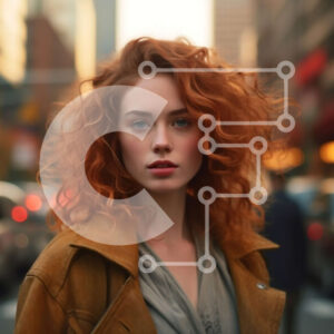 Intra Συλλεκτικό Ξύλινο Παζλ Plywood 4mm - Νεαρή γυναίκα με κόκκινα μαλλιά σε αστικό περιβάλλον Σε Ξύλινο Κουτί - Διαστάσεις Puzzle: 10x10 cm – 25 κομμάτια