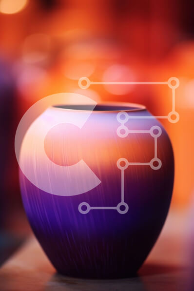 Intra Συλλεκτικό Ξύλινο Παζλ Plywood 4mm - Μωβ βάζο σε πορτοκαλί και κόκκινο φόντο Σε Ξύλινο Κουτί - Διαστάσεις: 10x10 cm – 25 κομμάτια