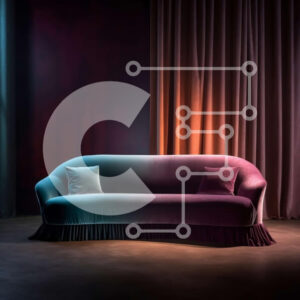 Intra Συλλεκτικό Ξύλινο Παζλ Plywood 4mm - Μωβ βελούδινος καναπές σε μπλε φωτισμένο δωμάτιο Σε Ξύλινο Κουτί - Διαστάσεις Puzzle: 10x10 cm – 25 κομμάτια