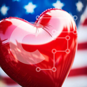Intra Συλλεκτικό Ξύλινο Παζλ Plywood 4mm - Μπαλόνι αμερικανικής σημαίας σε σχήμα καρδιάς για τον εορτασμό της 4ης Ιουλίου Σε Ξύλινο Κουτί - Διαστάσεις: 10x10 cm – 25 κομμάτια