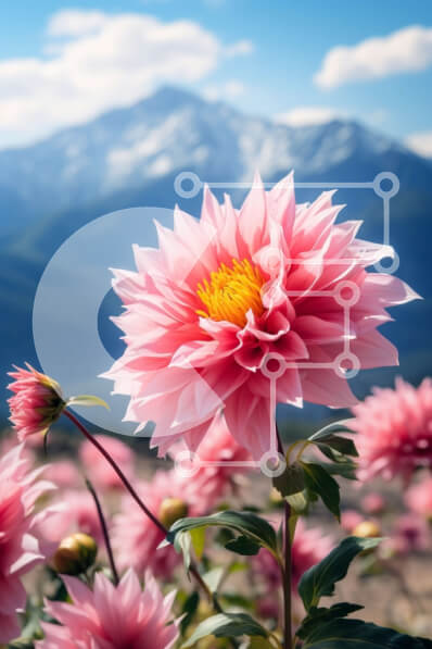 Intra Συλλεκτικό Ξύλινο Παζλ Plywood 4mm - Όμορφο τοπίο με ροζ λουλούδια με μαγευτικά βουνά Σε Ξύλινο Κουτί - Διαστάσεις: 10x10 cm – 25 κομμάτια